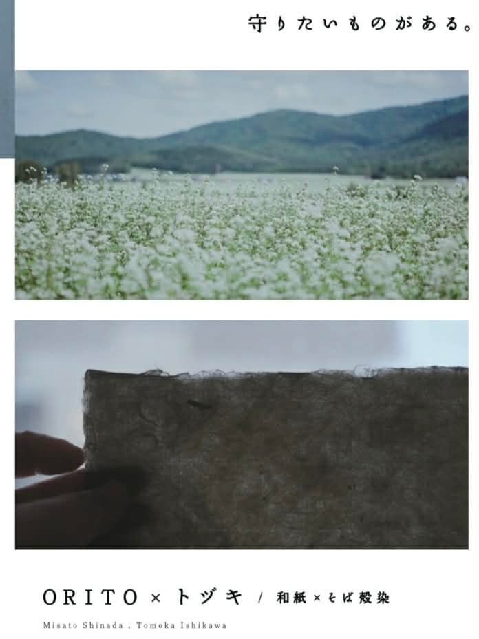 幌加内町のそば殻で染めた和紙を、ORITOさんこと、品田美里さんがひとつずつ時間をかけて折っていきます。https://www.instagram.com/orito____/